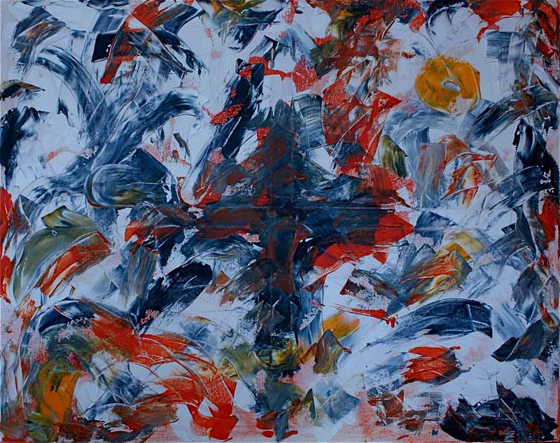Na kratko je koketirao s jednobojnim slikama gdje nam je u crvenom tonu dočarao energiju, snagu i toplinu dok nas je plavom bojom uspio umiriti. Skoro bi mogli reći da su to slike idealne za kromoterapiju.