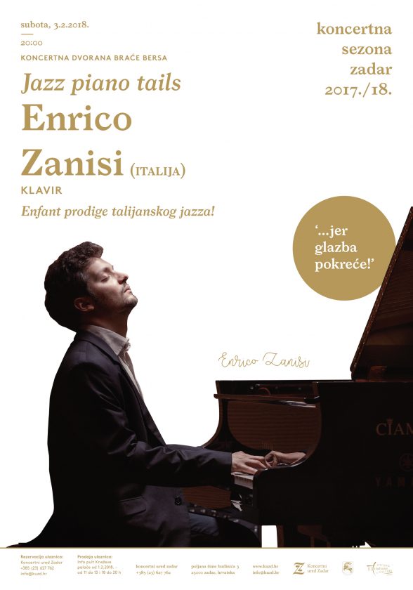 Koncert s početkom u 20 sati donosi nastup jednog od najtalentiranijih mladih jazz pijanista iz Italije, Enrica Zanisija