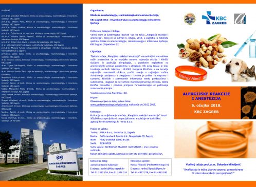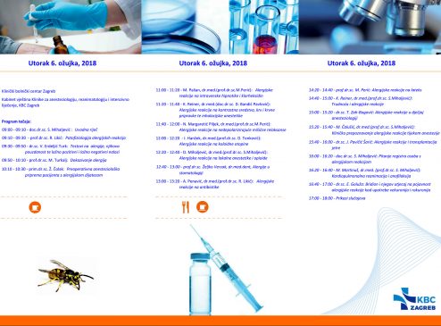 Tečaj pod nazivom ,Alergijske reakcije i anestezija” održan je 3. ožujka u Kabinetu vještina Klinike za anesteziologiju KBC-a Zagreb. Uvodno predavanje i pozdrav brojnim sudionicima tečaja održao je prof. dr. sc. Slobodan Mihaljević, predstojnik Klinike za anesteziologiju, reanimatologiju i intenzivno liječenje KBC-a Zagreb na Rebru.