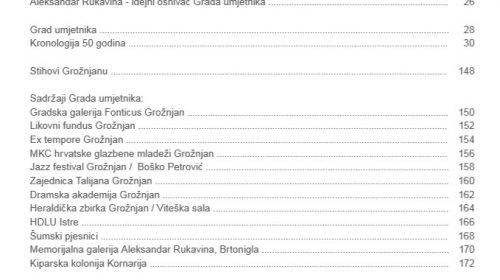 Ako u ovoj publikaciji i nisam nekoga spomenuo, to je zaista nenamjeran propust. Trudio sam se da smo svi mi, prisutni Grožnjanci i oni kojih više nema, umjetnici i stanovnici, vinovnici proteklog vremena, barem spomenuti. Vizija budućnosti povezana je upravo sa svim ovim osobama i djelatnostima. Razvijati se u vremenu moramo usporedno.