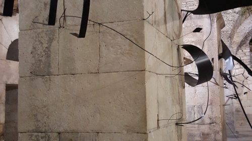 …Upoznavanjem jedinstvene instalacije prostornog crteža promatrač spoznaje dinamiku i karakter samog autora kao i prostora u kojem je instalacija smještena. Linija tumači glavnu fabulu, no osim što se povremeno materijalizira u konkretnije natruhe figurativnih formi, ona ujedno ustupa mjesto pauzama, tj. prazninama u prostoru koje pružaju promatraču mogućnost da sâm dovrši priču i na taj način aktivno sudjeluje u radu.