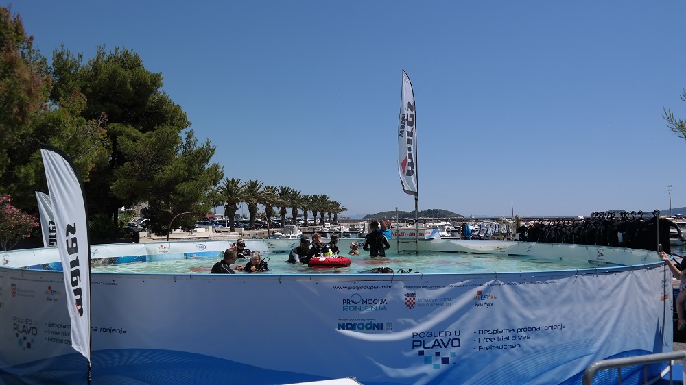 Montažni 10 metarski bazen projekta bit će montiran na plaži JAZ gdje će svi posjetitelji imati priliku potpuno besplatno zaroniti u bazen, upoznati se sa ronilačkom opremom te dobiti osnovne informacije o ronjenju i ronilačkoj ponudi.