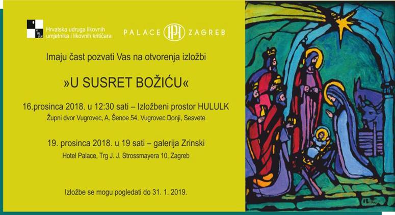 Dvadeset i devetero likovnih umjetnika, članova HULULK-a i njihovih gostiju, već tradicionalno u vremenu adventa ovaj put dvama izložbama, na dvije lokacije – prvom u pitoresknom Vugrovcu, u Župnom dvoru, drugom na najljepšoj adventskoj lokaciji Zagreba, prinose Isusu svoja djela na dar. U njima se isprepliću oblici i kolori nadahnuti ljubavlju i vjerom u temi posvećenoj Isusovom rođenju, stvaranju, utjelovljenju,…