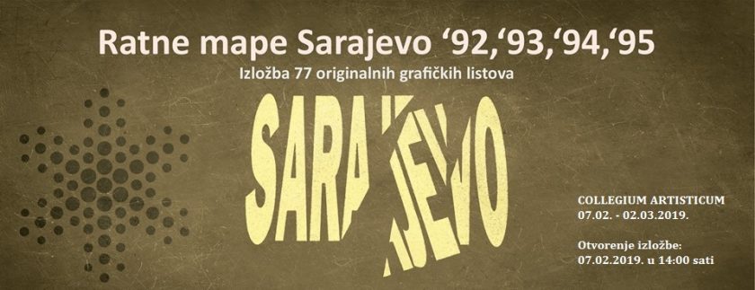 Galerija Collegium artisticum poziva na otvorenje izložbe “RATNE MAPE GRAFIKA: SARAJEVO ’92, ’93, ’94. i ’95.“ Otvorenje će biti održano u četvrtak, 07. februara 2019. godine u 14:00 sati, u sklopu programa otvaranja XXXV Internacionalnog festivala Sarajevo “Sarajevska zima“. Publika će izložbu moći pogledati do 02. marta.