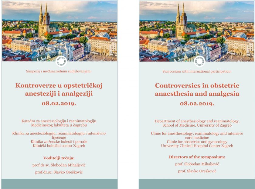 Simpozij s međunarodnim sudjelovanjem pod nazivom “Kontroverze u opstetričkoj anesteziji i analgeziji” održao se 08. veljače 2019. godine u Klinici za ženske bolesti i porode u Petrovoj bolnici u Zagrebu