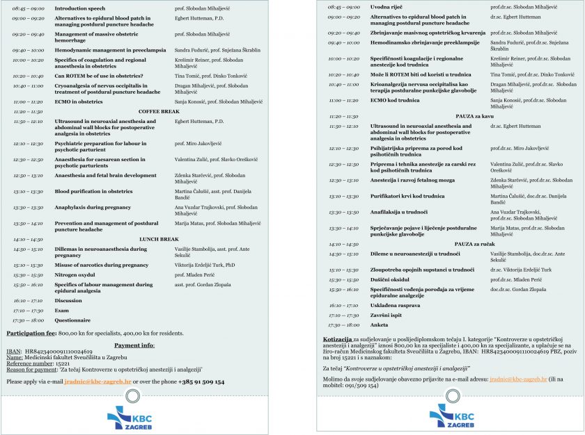 Voditelji simpozija su prof.dr.sc. Slobodan Mihaljević, predstojnik Klinike za anesteziologiju, reanimatologiju i intenzivno liječenje KBC-a Zagreb i prof.dr.sc. Slavko Orešković, predstojnik Klinike za ženske bolesti i porode KBC-a Zagreb – Petrova bolnica