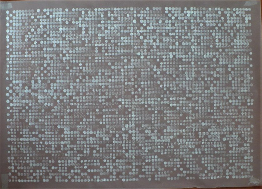 U njima nalazimo linije, točke/kuglice, zapise, tekućine, sjene, sipke materijale i ljudske figure. Iako u postavu nalazimo i sasvim plošne sliko-crteže, većina radova su višeslojni reljefi. Ponekad autorica sasvim izlazi u prostor koristeći prozirno staklo kojim izdvaja područja. Umjetnica kaže: „…Ono što me zaokuplja nije fasada rada već prostori između dvije plohe, prostor ispunjen energijom, tajnoviti prostor…“