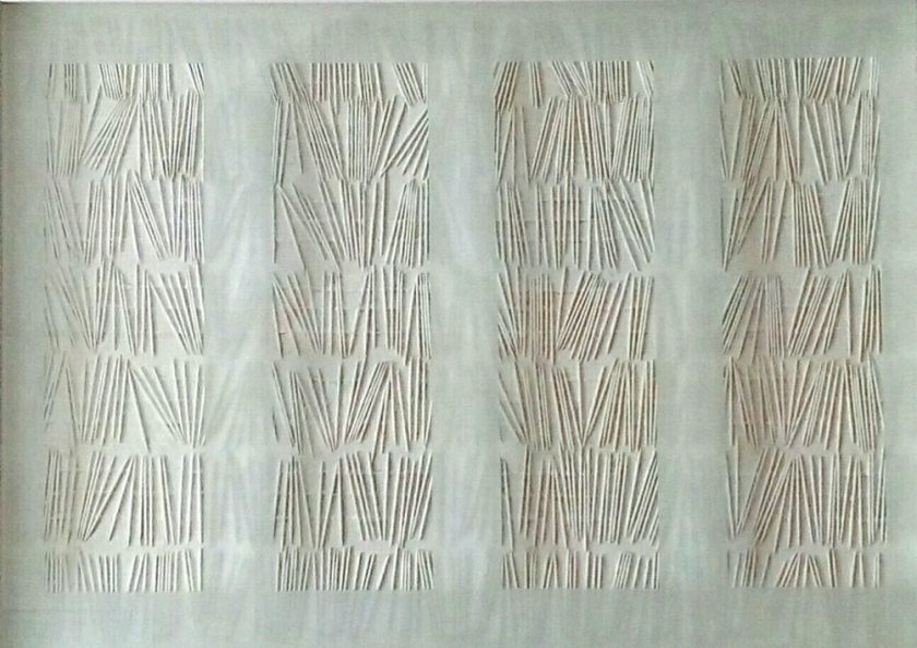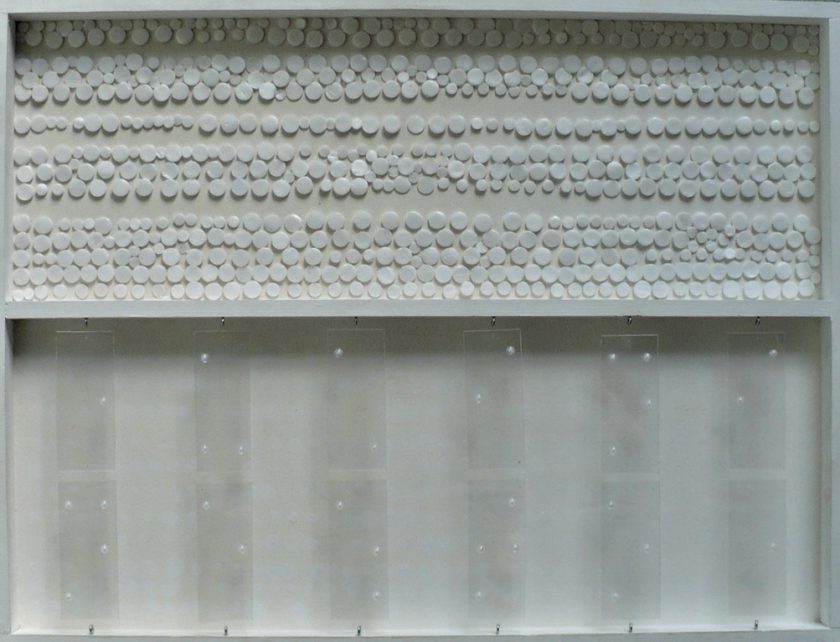 Umjetnica promatraču zadaje zadatak uočavanja detalja radova. Ponekad prikrije dio staklene površine pa nam dopušta samo neke uglove pogleda. U slojevima – zaustavljenim trenucima – nalazimo razgibane, neočekivane kombinacije oblika. Forme su često pojednostavljene, stilizirane, dovedene do znaka. Ponegdje primjećujemo zapise. Oni su uvijek zagonetni. Ili su prikriveni, npr. u svitak ili su ispisi Braileovim pismom. Jedan rad možemo nazvati živom slikom jer se, u vremenu, elementi na njemu mijenjaju. On je izveden s prahom/solju koja sipi iz gornjeg ka nižim pretincima.