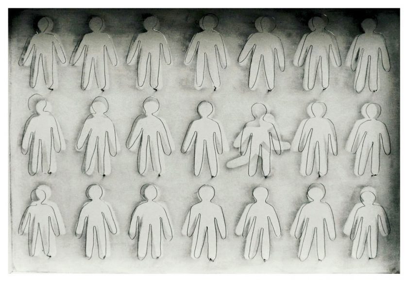 Čini se da radovi iskazuju intimizirane odbljeske umjetničinih doživljaja. Unatoč dozi narativnosti, umjetnica izbjegava zamke. Većina radova ovog postava problematizira suvremenost. Pojednostavljene figure ljudi kao da govore o problemima socijalnih statusa. Dodiruju pitanja osobnih sloboda pod utjecajem zadatosti vremena. Umjetnica opetovano nudi ideju posebnosti, iskoračivanja iz prosjeka. Tako grupacije ujednačenih figura bivaju prekinute, narušene figurom koja ne poštuje redoslijed, koja remeti ritam ostalih, apatičnih, unificiranih. Ovdje se prisjećamo Naomi Klajn i njene „Doktrine šoka“. Ona nas upozorava kako smo „bombardirani“ informacijama pa ne uspijevamo pohvatati cjelinu, a također ne shvaćamo da su čestice informacija namjerno raspršene radi odvlačenja pažnje, proračunate na naše skromne mogućnosti osjeta i/ili percepcije.