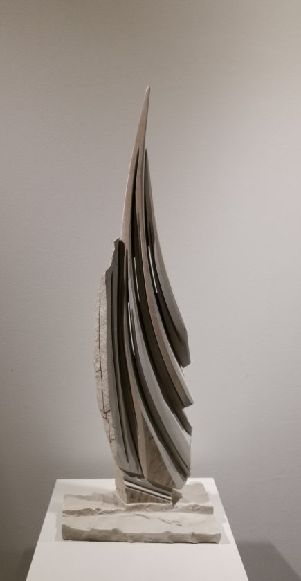 - Sva ta raznolika životna stanja imala su odraza i u skulpturi Mate Turića, koji nam se u „Galeriji Kraluš“ predstavlja presjekom svojeg dosadašnjeg opusa. U njemu kipar, u mediju oprostorenih reljefa, zapravo „lavira“, varira milenijski likovni motiv broda na jedra koji se u Europi i u nas prvi puta javlja na neolitičkoj keramici iz Grapčeve špilje, a u formi kamenog reljefa na prikazu rimske lađe danas ugrađenom u zvoniku župne Crkve u Starome Gradu na Hvaru.