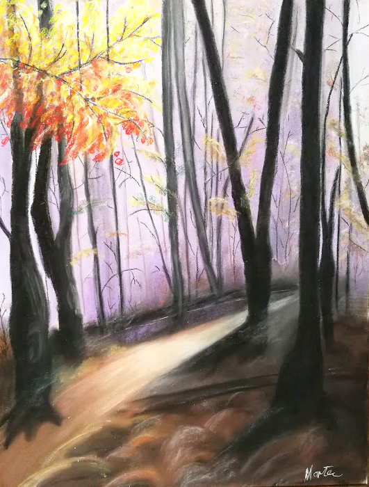 Od tehnika se najbolje snalazim s akrilom crtajući doslovno, na čemu stignem – od platna, papira, starih plahti, stiroporu, komadima drva, kamenju.. Nedugo sam otkrila i suhi pastel u kojem me najviše očarava njegova nježnost i providnost (iako mi nedostaje suhi pastel u olovci pa bih možda bila zadovoljnija konačnim radom, no uvijek težim boljem pa zapravo nikada i nisam do kraja zadovoljna svojim radom).