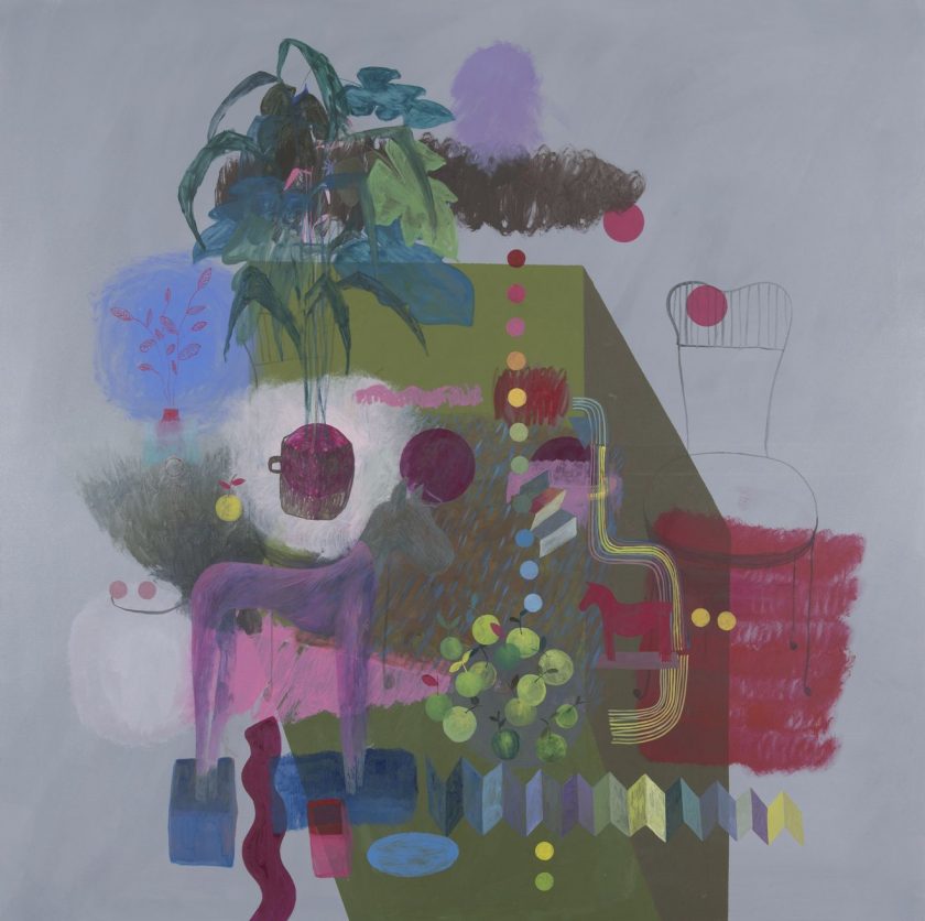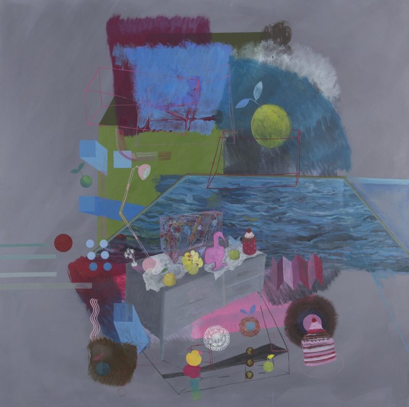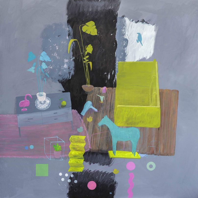 Za ovu je prigodu Šimunović odabrao svoje nova djela, njih ukupno osam, iz ciklusa Interijeri, akrile na impozantnim formatima 150 x 150 cm.