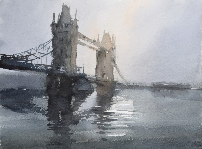 I na ovoj izložbi svjedočimo čudesnoj lakoći slikanja Gorana Žigolića ( istina je, akvarel je tehnika za brze, za one koji mogu promptno odgovoriti na izazov teme), njegov potez je lepršav, lagan, akvareli se kupaju u laganoj, tajanstvenoj, fluidnoj izmaglici, sve je tiho, sivkasti zrak sasvim se približio arhitekturi, rijekama, moru,zemlji i kao je da cijeli prostor zatečen u očekivanju, što će se desiti kada se izmaglica podigne i prava lica grada (gradova) napokon se ukažu.