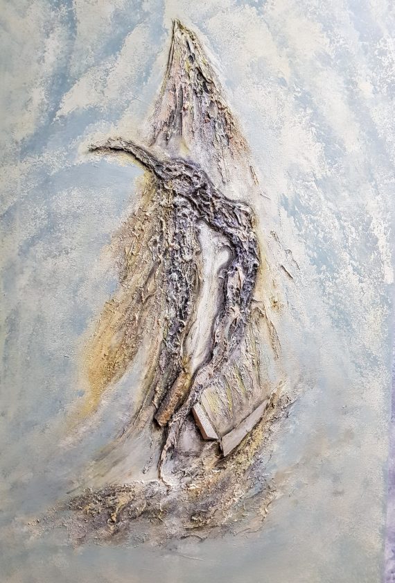 Moja tehnika je specifična po tome, radim reljefne slike i pri tom koristim različite materijale kao što su metal, kamen, staklo,… znači mix media, a pri tome koristim akrilne boje i različite lazure…