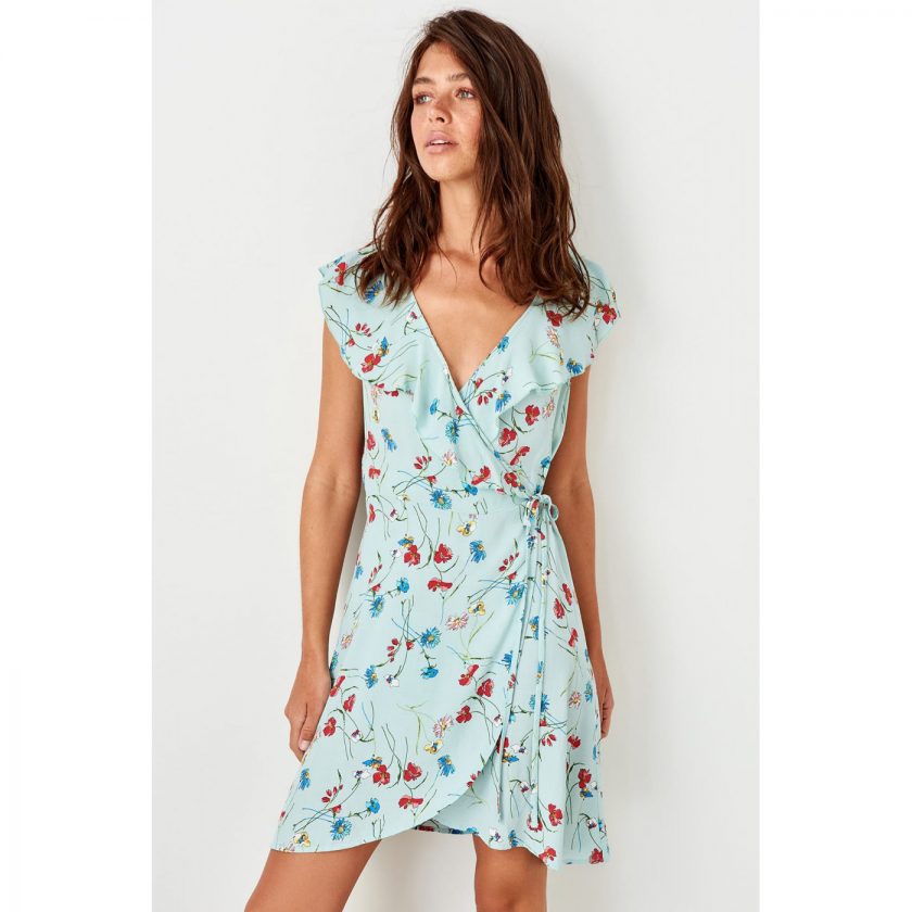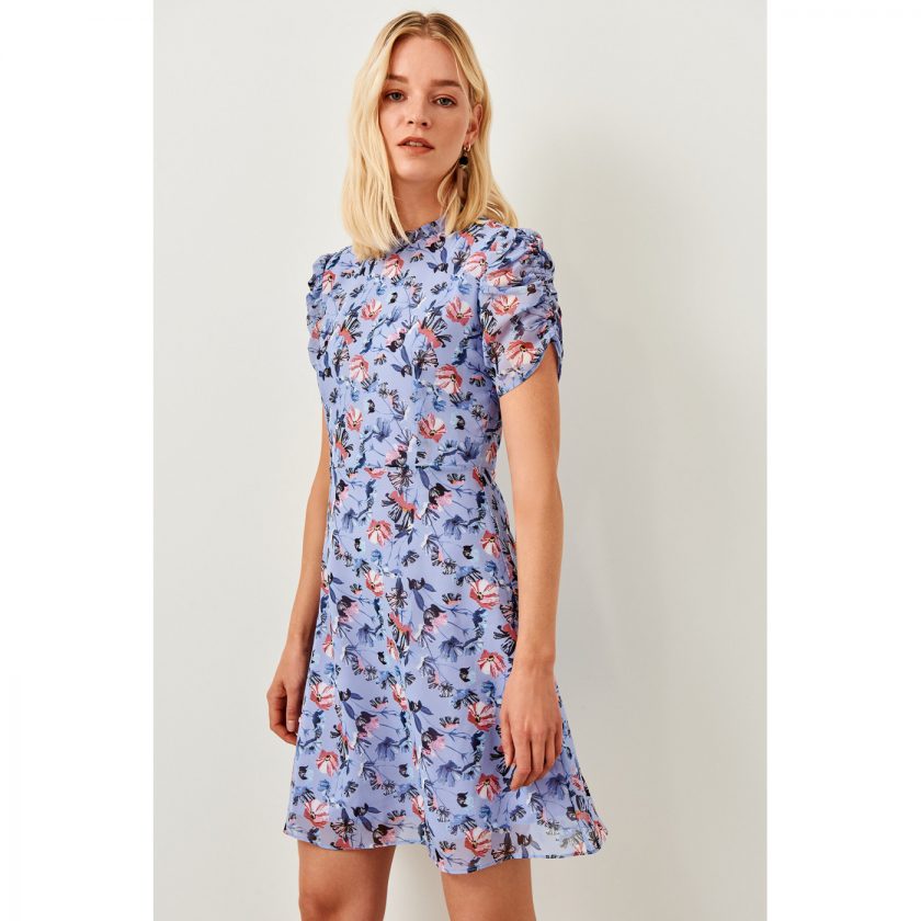 Trendyol Blue Flowers Double-breasted Dress