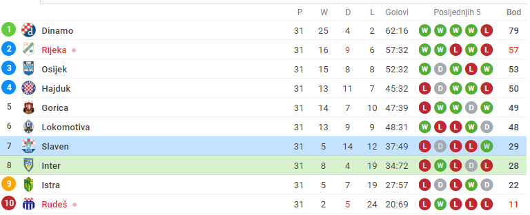 Ovom pobjedom Slaven je preskočio Inter na sedmom mjestu ljestvice, koprivnički sastav sada ima 29, a zaprešićki 28 bodova, dok je deveta Istra 1961 sa 22 boda. Autor: Hina