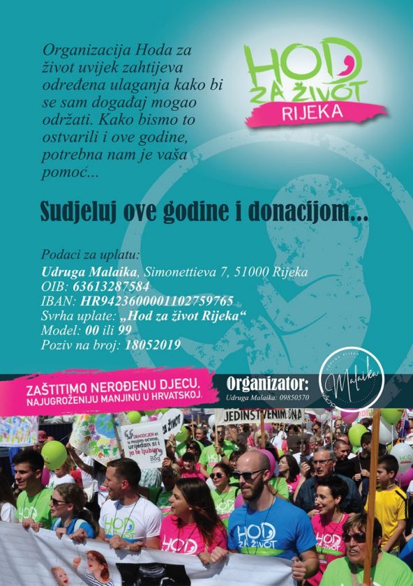 HOD ZA ŽIVOT koji odvijati će se 18. svibnja 2019. godine u Rijeci