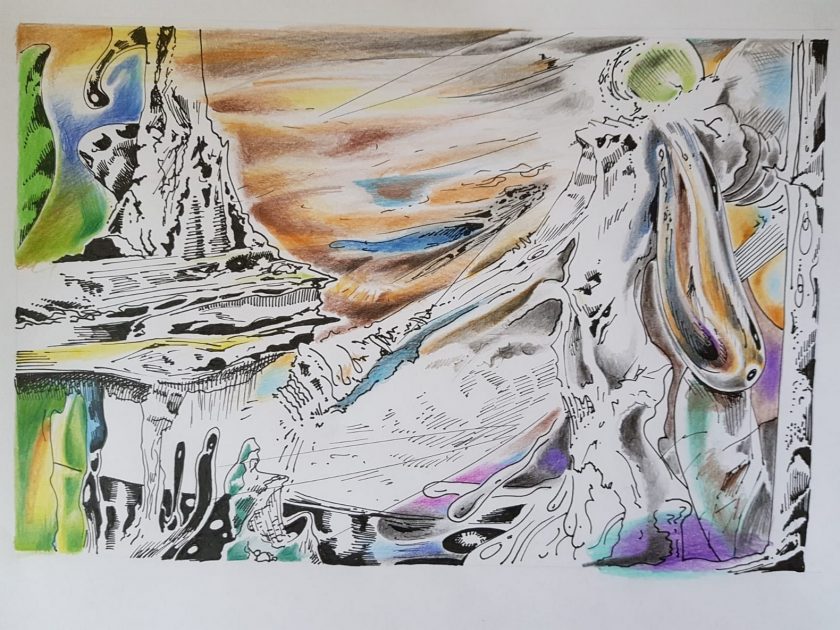 I Danko ima sposobnost premošćivanja stilističkih ukalupljivanja, dosjetljivog brisanja granica između medija slike i suvremenog medija (fotografije, filma), ne samo u eksploataciji tehnologije, već i u posudbi ikonografskih elemenata. Tako elementi znanstvene fantastike, drugorazrednih holivudskih produkcija (1/2 20.st) ili stripa, u njegovim slikama doživljavaju čudesnu revitalizaciju, uobličenu u kolorističku i oblikovnu psihodeliju, teško prepoznatljive fabule, koja nam se otkriva tek u nazivu djela (ili ne?).Taj Dankov SF „umjetničko-fantastični“ imaginarij zasniva se na demistifikaciji značenja i sadržaja, na dijalogu suprotnosti – čvrstog i rasplinutog, oštrog i zamagljenog. Sada u manjem izdanju od svojih više metarskih senzacija na platnu, u crtežima A3 formata, u kojima evidentno doživljavamo erupciju energije, prasak kumulativne snage kojom forme nisu opisivane već su gestom prepoznatljivog Dankova psihograma utisnute u koloplet raznovrsna poteza i tretiranja plohe različitom zasićenošću partija materijom kolora. Upravo iz tog rasapa obličja i kolora u mrlju, u točku, događa se i „pikselizacija slike“ kao vlastita strukturalna inovacija, koju predstavlja i na izložbi kao dostojan pandan očevim slikarskim iznenađenjima.