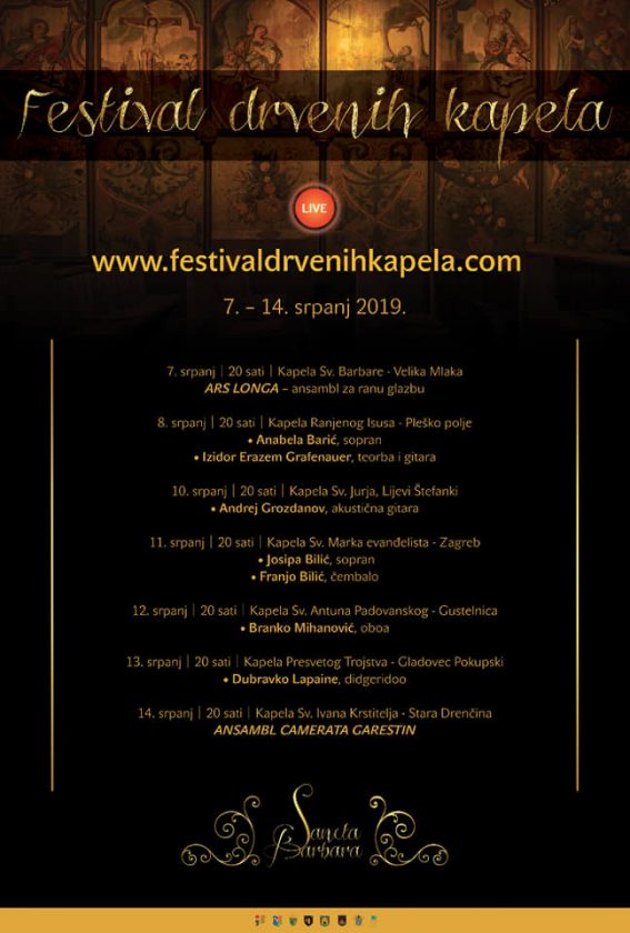 Srdačno Vas pozivam na Festival drvenih kapela Sancta Barbara od 7. – 14. 7. u Turopolju i Pokuplju! Program festivala je raznovrstan, od rane i klasične glazbe, do world music i gospela u izvedbi vrhunskih umjetnika!