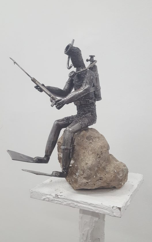 Dugi niz godina autor na recikliranom materijalu odbačenih termo peći, bojlera, perilica, auto dijelova itd., ponovno udahnjuje novi oblik, novi život svima njima, zanimljiviji i plemenitiji od prethodnog. Deset prstiju, aparat za varenje, brusilica, škrip, alat je kojim autor stvara respektabilna, impresivna, unikatna djela.