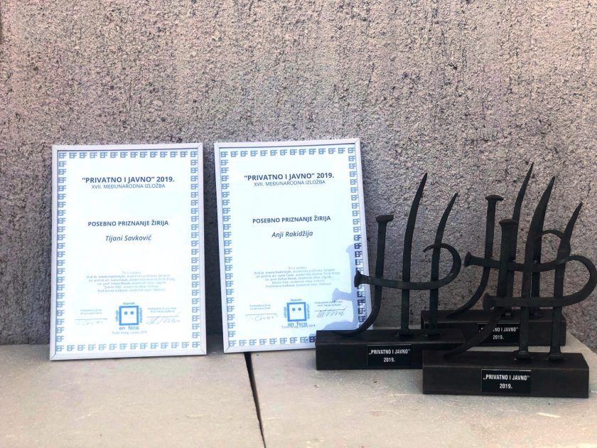 Jednakovrijedne nagrade „Privatno i javno“ dobile su mlade akademske grafičarke Nanda Agić iz Sarajeva za grafiku/bakropis „Buđenje“ iz recentnog ciklusa s tematikom intimnih auto-aktova i Danijela Šušak iz Splita za grafiku „Apopleksija“ iz ciklusa u kojem umjetnica kritički analizira estetiku odjeće i defekata kao društvenih suprotnosti prihvatljivog i neprihvatljivog, ili kamufliranja nedostataka odjećom i modnim dodatcima.