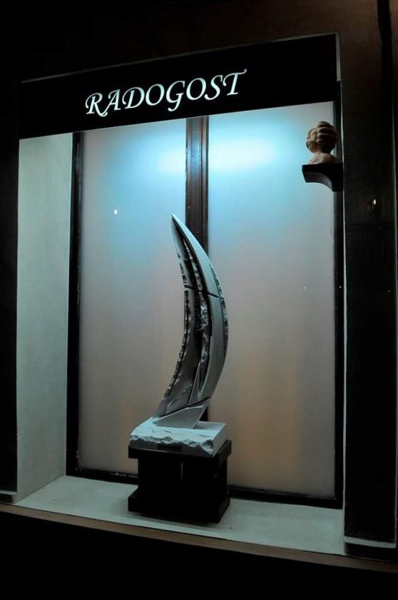 Gost meseca julija v Oknu Radogost in stari galeriji je nadobudni mladi kipar Mate Turić Vrbovca na Hrvaškem. Na jubilejni razstavi v mesecu maju sem dobil njegovo zgibanko in neposredno zaznal in dojel bistvo njegovega kiparskega izraza. Intuativno sam se odločil zanj, čeprav fizično njegovih del nisam videl. Pritegnila me je zenovska čista forma, ki deluje varljivo abstraktno, budi pa prikito poved. Dela so me s svojo belino spomnila na japansko umetnost zgibanja papirja – origami; na strnjena krila metuljev, krila ptic in cvetnih listov in origami objektov. Nekaj skulptur tudi na znano sliko Val japonskega slikarja klasika Hokusia. Šale kasneje sam prebral iz zgibanke, da so to njegova kamnita jadra. V nadaljevanju dogovorov pa sam ugotovil, da sem se pravilno odločil, kar potrjujejo, ki sledijo: