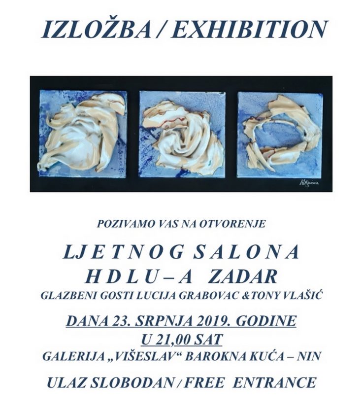 U sklopu Ninskog kulturnog ljeta 2019. u Galeriji Višeslav, u Baroknoj kuć i u Ninu, 23. srpnja 2019. s početkom u 21 sat otvoren je 1. Ljetni salon HDLU-a Zadar na kojem će se ninskoj javnosti predstavilo 28 izlagača, slikara, keramičara, skulptora i fotografa