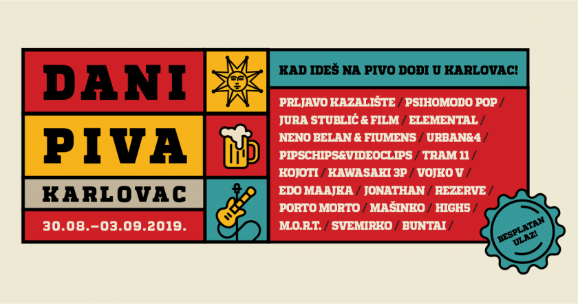 Tradicionalni 33. Dani piva Karlovac održat će se od 30. kolovoza do 3. rujna na nekoliko novih lokacija koje cijeli Karlovac pretvaraju u festivalsku zonu. Pivo, gastronomija, kampiranje, raznovrstan glazbeni izričaj te dobra zabava osnovne su smjernice novog koncepta koji grad na četiri rijeke upisuje na „glazbenu festivalsku kartu“ Hrvatske. Do početka Dana piva odbrojavamo još nešto manje od mjesec dana, a u nastavku donosimo raspored izvođača po danima kako bi na vrijeme stigli isplanirati provod koji će se pamtiti.