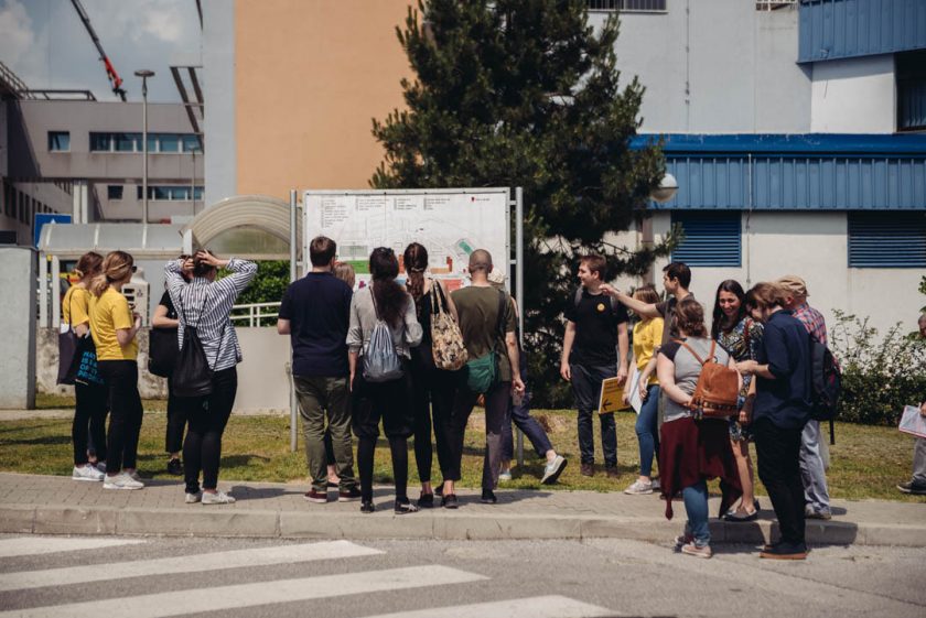 Prvi dan radionice realiziran je kroz terensku radionicu koja je održana 5. lipnja na lokaciji KBC Zagreb – Rebro, Kišpatićeva 12, Zagreb. Sudionici radionice, predstavnici građana i partnerskih organizacija su, kroz obilazak bolničkog kompleksa, snalaženjem u prostoru prilikom traženja zadanog odjela i ispunjavanjem Ankete o zadovoljstvu korisnika oblikovanjem signalistike, opreme i prostora u zdravstvenim ustanovama, bilježili svoja opažanja i ocjenjivali postojeću signalistiku i opremu u čekaonicama, hodnicima i eksterijeru bolničkog kompleksa.