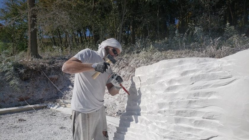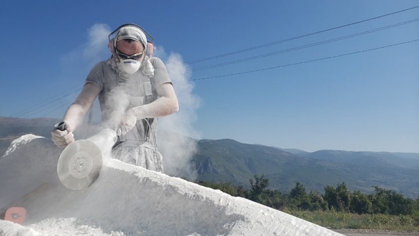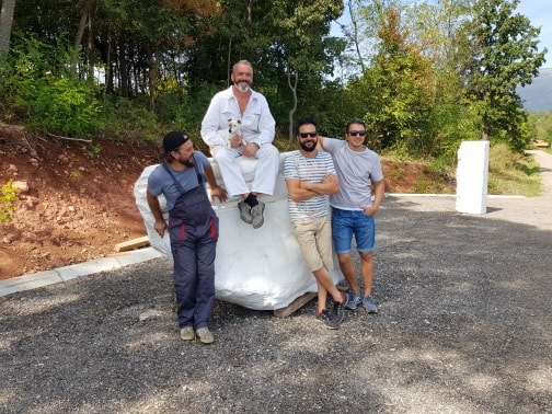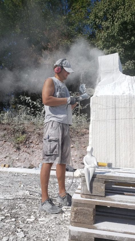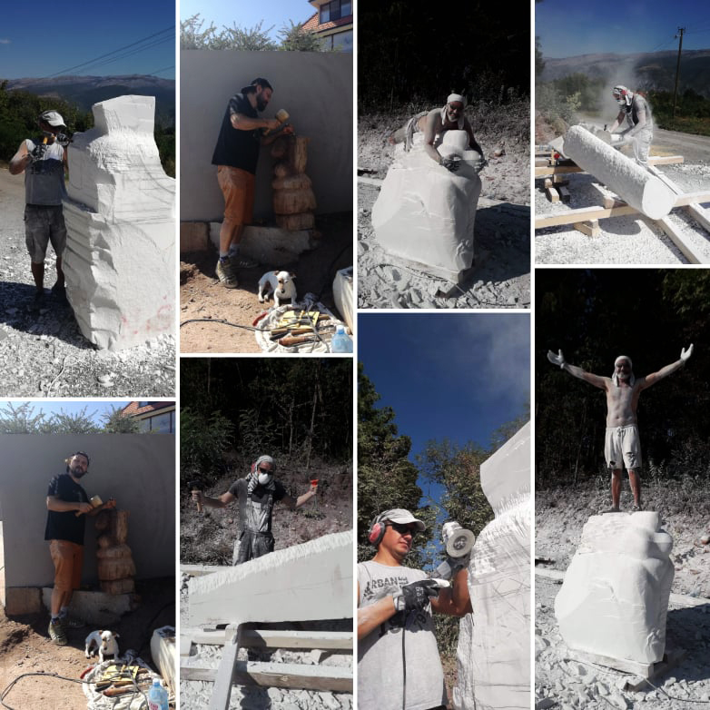 “Radit ćemo 3 tjedna. Odlučili smo se za velike komade bijelog mramora, kad sam vidio taj kamen u Prilepu bila je to laka odluka. Naše će skulpture stajati okružene poljima besmrtnika i lavande na plantaži Tamnjanica, zbog čega smo se odlučili za grandiozne formate. Komad u kojem radi kolega Jure Markot teži dvije tone, Nikola Smilkov radi u kamenu težak gotovo tri “, kaže Hranuelli.