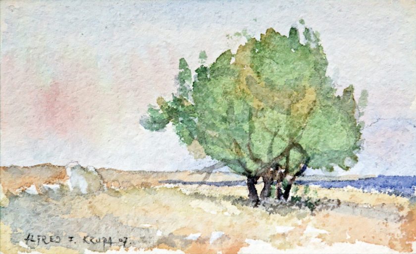 Promatrajući mnoge slike iz opusa akademskog slikara Alfreda Krupe, izvedene u različitim tehnikama i uz nazočnost svakovrsnih motiva, ne mogu se oteli dojmu kako slikar promatra svijet, svoju okolinu i zapisuje na platnu, papiru mnoštvo svojih emocija, razmišljanja, sjećanja, lijepa i bolna, snažna i površna, zapisuje svoje osjećaje na licu svijeta koji ga okružuje, na površini rijeke, odsjaju svjetla na arhitekturi grada,na drvu, cvijetu, malom, teško vidljivom predmetu.