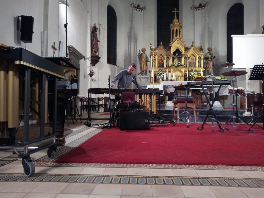 Uz Filipa su nastupili udaraljkaši Renato Palatinuš i Gregor Hrovat te pijanistica Elizabeta Adžaga. Večer je počela obradom za marimbu 1. suite za violončelo u G-duru, BWV 1007 Johanna Sebastiana Bacha, a potom je slijedila autorska skladba Filipa Merčepa TransPiece FINAL1.2 za vibrafon i uživo kontroliranu elektroniku, slobodna improvizacija uz računalni program koji reagira na određene parametre koje izvođač koristi u svojoj improvizaciji. U nastavku slijedile su klasičnije udaraljkaške skladbe – Passacaglia za marimbu i vibrafon Anne Ignatowicz-Glinska te Koncert za Ivanu, u obradi za klavir, dva udaraljkaša i solo marimbu Igora Kuljerića. Niti ovaj puta publika nije štedjela dlanove pa je Filip Merčep izveo skladbu Astora Piazzolle.