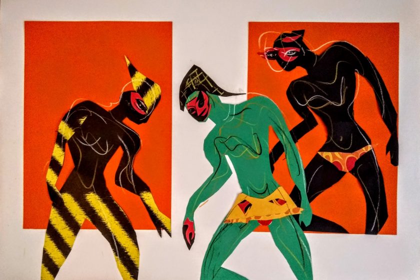 Pred nama se nižu listovi papira s rasplesanim figurama, koje katkada sliče kostimografskim rješenjima plesnih predstava, ali i raznovrsnim modnim izričajima jednoga vremena, kada je odjednom gotovo sve bilo dopušteno.