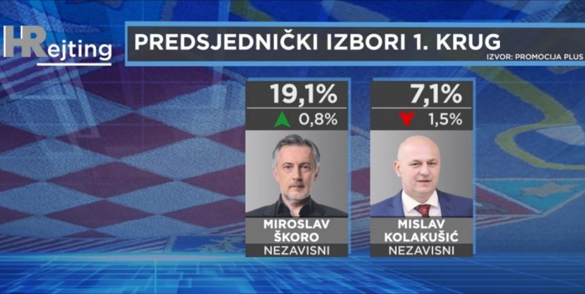Redoslijed potencijalnih kandidata potpuno je isti kao u rujnu. Potpora vodećem dvojcu više-manje raste, pa proizlazi da ćemo, ne napravi li netko od njih kardinalnu pogrešku u kampanji, imati jednu od najneizvjesnijih predsjedničkih utrka dosad. U odnosu na rujan Kolinda Grabar-Kitarović porasla je za 1,3% i sad ima potporu 29,8% birača. Točno 4% za njom zaostaje drugoplasirani Zoran Milanović kojega je rast od 1,1% doveo na 25,8%. Za 10,7% manje od aktualne predsjednice i 6,7% manje od SDP-ova kandidata ima trećeplasirani Miroslav Škoro – 19,1%. Njegova je potpora malo porasla u odnosu na rujan (0,8%), za razliku od četvrtog Mislava Kolakušića, kojega je pad od 1,5% sveo na samo 7,1% biračke potpore.