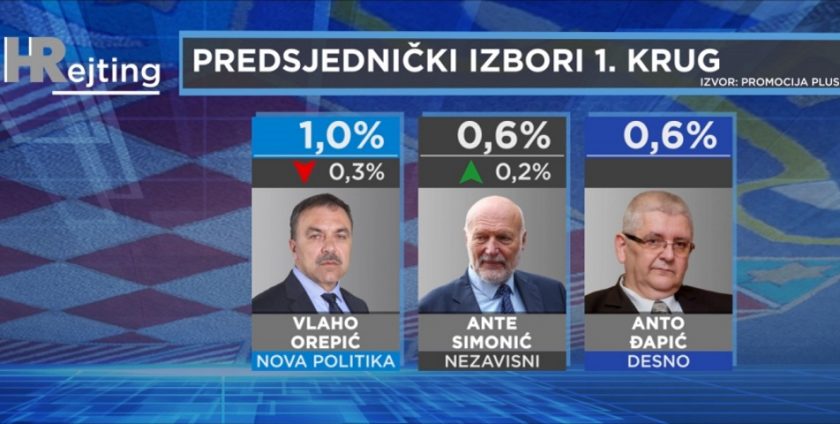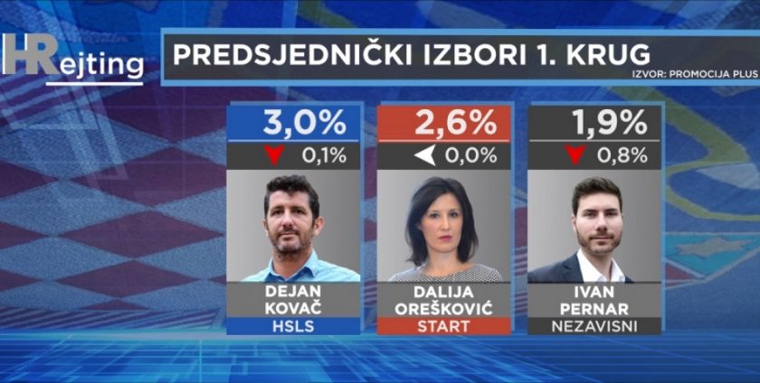 Svi ostali potencijalni predsjednički kandidati ne uspijevaju doseći ni 5%. Tako je HSLS-ov Dejan Kovač trenutačno na 3%, Dalija Orešković na 2,6%, a Ivan Pernar na 1,9%. Na točno 1% je Vlaho Orepić, a ispod njega su Ante Simonić (0,6%) i Anto Đapić (0,6%). Svi ostali koji su u nekom trenutku javno poželjeli biti predsjednik ili predsjednica dijele 1,9% glasova.