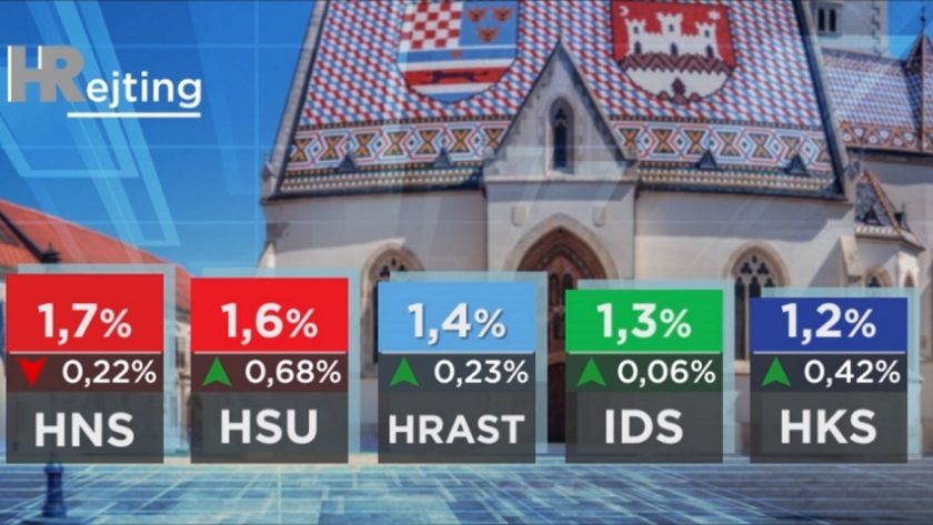 Raskol između Brune Esih i Zlatka Hasanbegovića odražava se, čini se, na rejting Neovisnih za Hrvatsku. Pali su u odnosu na rujan i sad imaju 2,2%. Prva među onima ispod 2% je stranka Milana Bandića s 1,9% koja uživa istu potporu kao Ivan Pernar 1,9%. Pernarova bivša stranka Živi zid od nekad treće političke snage u zemlji, spala je na samo 1,8% biračke potpore. Još manje dobivaju vladajući HNS (1,7%) i HSU (1,6%) koji je od svih stranaka ovaj mjesec najviše rastao. Ali samo malo više od 0,5%.