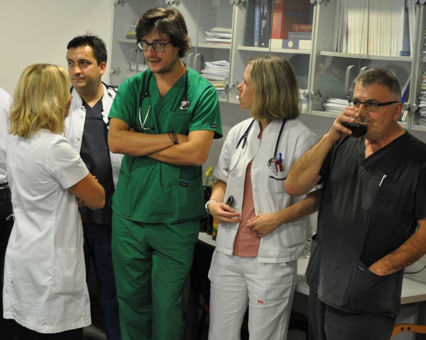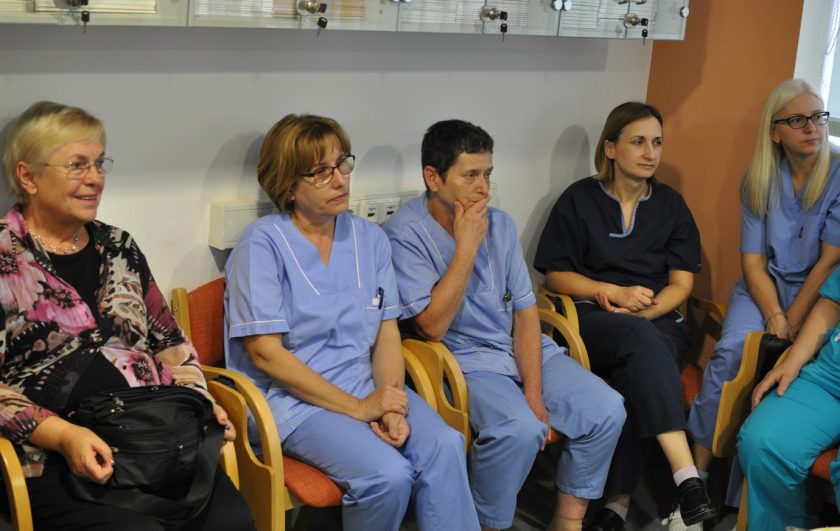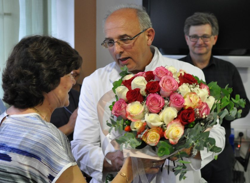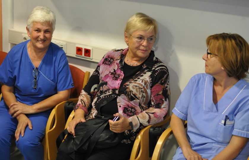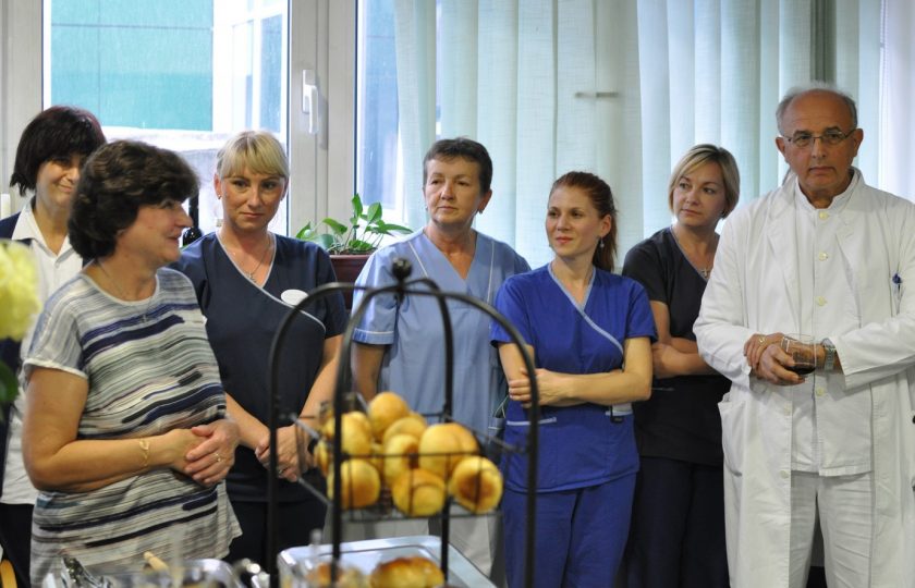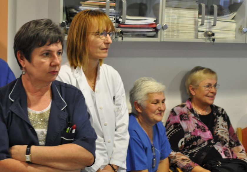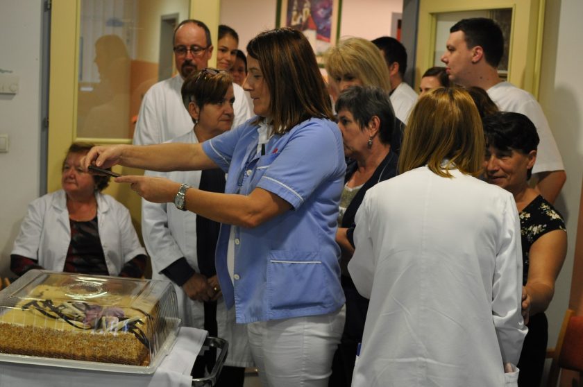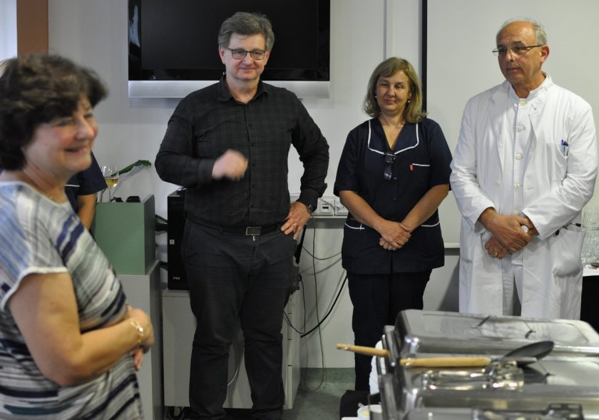 Na svečanom oproštaju prigodom odlaska u mirovinu nefrologinje prim.dr.sc. Ružice Šmalcelj, priređenom na Klinici za unutrašnje bolesti KBC-a Zagreb na Rebru u predavaonici Zavoda za nefrologiju, arterijsku hipertenziju, dijalizu i tranplantaciju, govore zahvale održali su prof.dr.sc. Bojan Jelaković, pročelnik Zavoda za nefrologiju, arterijsku hipertenziju, dijalizu i tranplantaciju, prof.dr.sc. Željko Kaštelan, predstojnik Klinike za urologiju, prim.dr. Ivan Barišić, voditelj Odjela dijalize u Zavodu za nefrologiju, arterijsku hipertenziju, dijalizu i transplantaciju Klinike za unutrašnje bolesti, KBC Zagreb i doc.dr.sc. Renata Žunec, pročlenica Zavoda za tipizaciju tkiva KBC Zagreb.