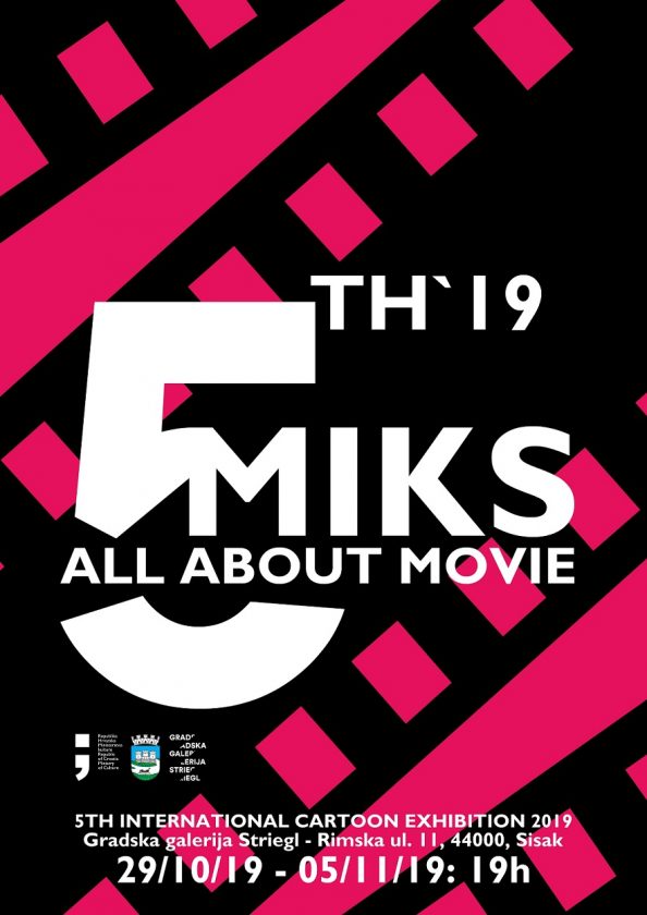 U Gradskoj galeriji Striegl 29/10/2019 otvorena je jubilarna 5. Međunarodna izložba karikature u Sisku – “Sve o filmu”. Na izložbi je predstavljena selekciju od 100 radova od ukupno pristiglih 1872 rada koje je poslalo 686 autora iz 81 zemlje.