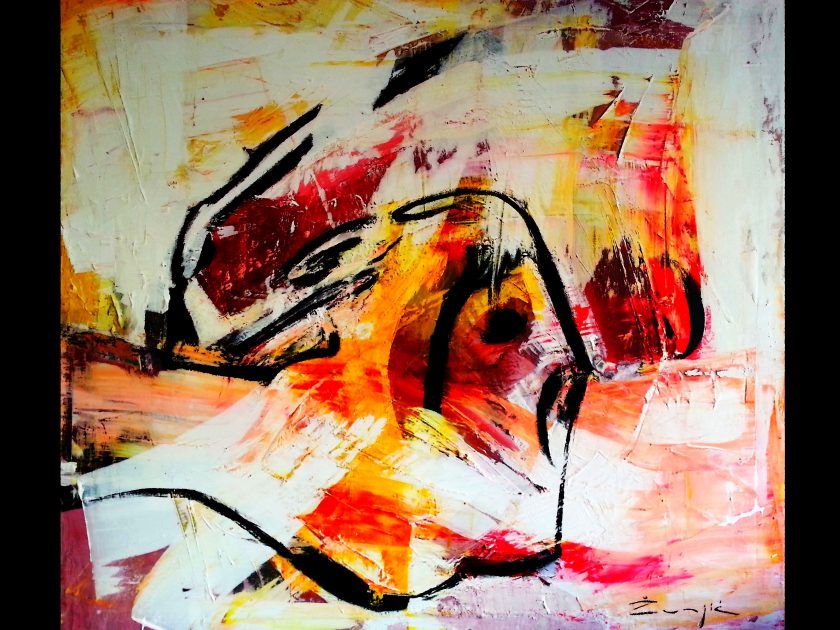 Da ovo su isto veliki formati, ali nisu moji najveći. Odlučio sam da na ovoj dimenziji platana 100×110 cm dobivam taj zgusnuti ritam boja, koji bi se na većim formatima, možda malo razvodnio.