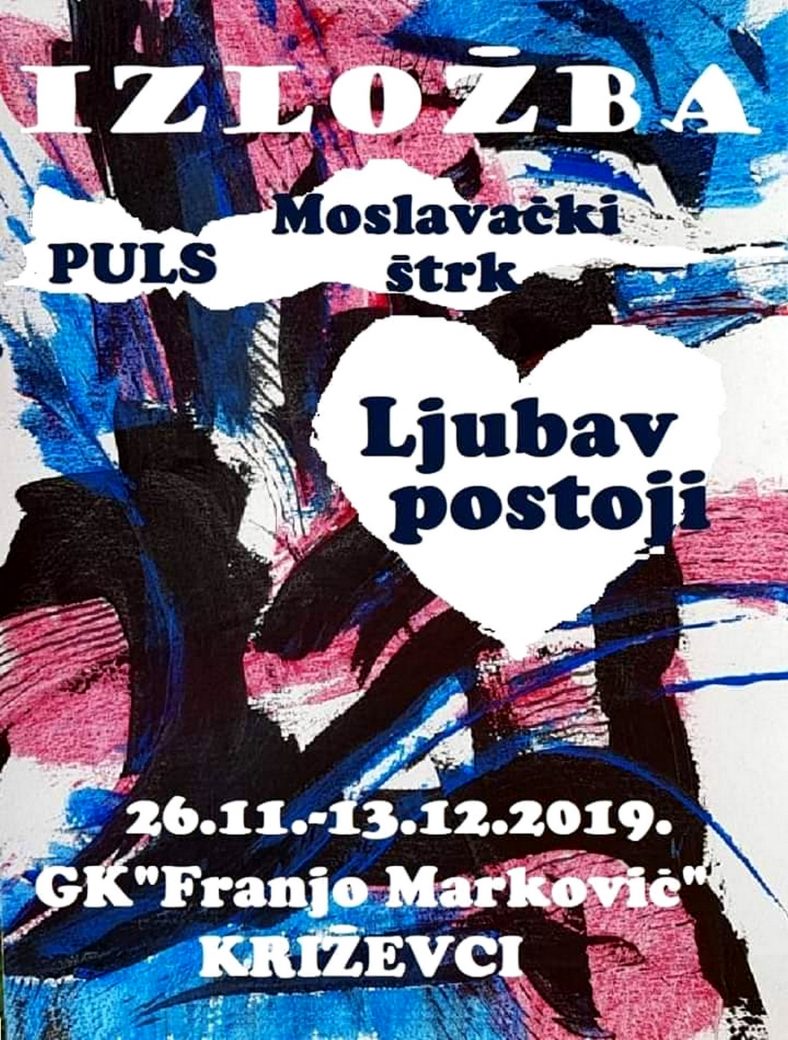 Izložba dvadeset autorica i autora naziva “Ljubav postoji” članova PULS-a “Moslavački štrk”otvorena je 26. studenog u Gradskoj knjižnici Franje Markovića u Križevcima
