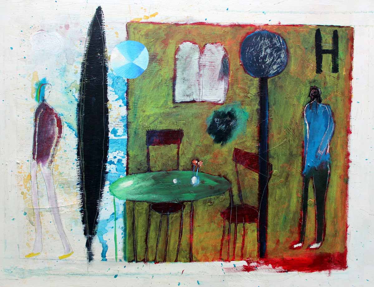 Kastavski umjetnik i privatni galerist ( Galerija – atelier Lokvina ) Saša Jantolek istodobno je vješt crtač stripova, ilustrator, narator slike – teksta, po potrebi „lutkar“, i slikar blizak „povratku slici“, hedonističkom, ludički razigranom i „divljem“, „dječjem“ izrazu kakav je vladao tijekom 80-ih, te graffiti – artistima, Neo-ekspresionistima, „Novim“ – Primitivistima poput slavnog američkog slikara Jeana – Michela Basquiata. Poput njih, razvija širok dijapazon plastičkih interesa – od crteža / slika na rubu monokromije i apstrakcije do eksplicitno figurativnih i tekstualno „raspričanih“ radova koji djeluju poput stripovsko – slikarskih „tabli“, „pasica“ neke otvorene, asocijativno bogarte, a „nedovršene“ priče ( Unendliche Geschichte, Neverending Storry ), podobne za maštanje, bezbrojne literarne, imaginativne nastavke, poput šetnje od nekog osamljenog hotela na obali do skoka u more – kako je autor i nazvao jedan od slikarskih ciklusa koje će sažeto prezentirati na izložbama u Galeriji Varuna i u Zaprešiću ( galerija ULUPUH-a ) ove jeseni.