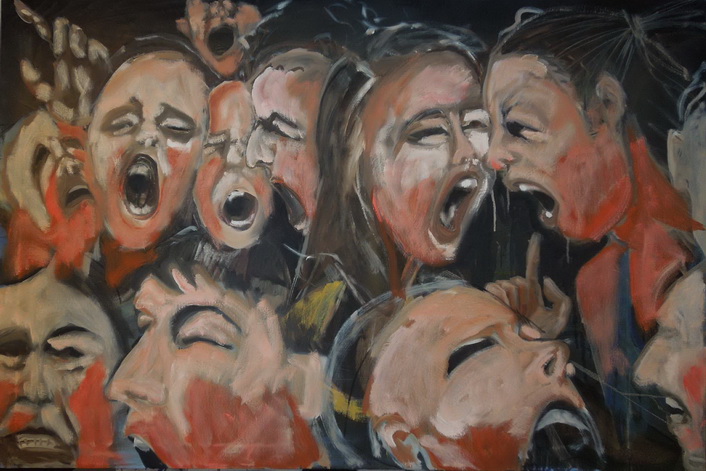 Dramatični rad podastire Angela Masevska. Ona oblikuje kolaž snažnog kolora i bogat elementima. Na podlozi nalazimo ljudsko lice izvedeno ekspresivnim potezima. Na njemu ili pored njega ona postavlja, kolažira izreske tekstova iz časopisa. Ovaj slikarski rad plijeni pažnju promatrača koji prepoznaje vlastito nezadovoljstvo. Umjetnica kaže: „Tranzicija ima različite oblike, ali posljedice su uvijek iste. Problemi koji proizlaze iz toga, svugdje u svijetu, bez razlike, određuju kolaž emocija. To je produkt karaktera tranzicije. Ono sto mi instinktivno stvaramo i prepoznajemo, je lik čovjeka koji u sebi nosi nezadovoljstvo, jad i bijes, prije svega upućenog samom sebi, zbog svoje nemoći da promijeni bilo sta…“