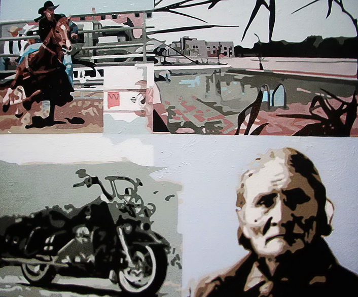 Vladislav Šćepanović uzima scene koje prepoznajemo iz „svijeta spektakla“. Ovaj rad sastavljen je segmentima figurativnih isječaka pa djeluje poput kolaža. Sliku urađenu tehnikom ulja na platnu, većeg formata, autor ispunjava sa četiri scene. Na njoj nalazimo kauboja, bazen sa bogataškom vilom u pozadini, motor i portret indijanca. Naziv rada: „The Spirith of Geronimo“ otkriva lice sa jedne od scena. Geronimo je legendarni američki indijanac čiji duh nikad nije umiren iz razloga što mu je glava nakon smrti odvojena od tijela i nalazi se na različitim lokacijama.