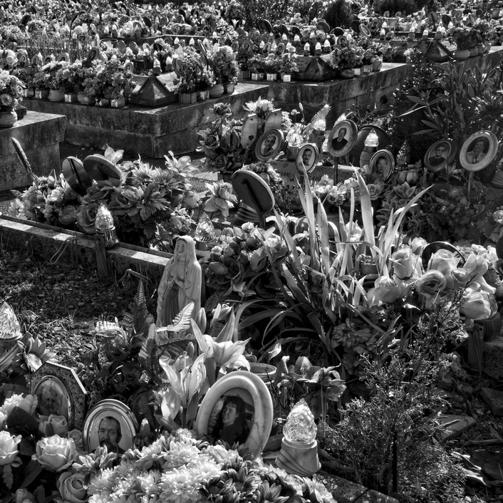 Slađan Dragojević podastire likovno i tehnički izuzetnu fotografiju na kojoj problematizira groblje. On se usredotočuje na način obilježavanja pozicije mrtvog tijela i kiča kojime ta mjesta obiluju. Umjetnik bilježi fotografije, statuete, artificijelno i živo cvijeće čije gomilanje uklanja čitkost lokacije. Ideja rješavanja trupla navodi nas pristajati na nevjerojatne situacije. Načine i gabarite mjesta za zadnji počinak oblikuju živi. Zarada od poslova s leševima je velika neposredno nakon smrti. Ošamućeni ožalošćeni pristaju na svašta u trenucima izbora kovčega, oblika pogreba, vijenaca i drugih izmišljotina. Umjesto tuge rađa se briga i, naravno, financijski izdaci. Tome kumuju interesi grupacija ljudi koji se time bave. Tako nastaju konglomerati poput ovog kojeg bilježi Slađan Dragojević. Njegov rad svjedoči realnost naše budućnosti. Ali, na sreću, poslije nam je sasvim svejedno.