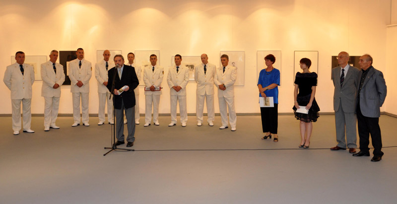 Franjo Feldi na svečanom otvorenju svoje samostalne izložbe crteža pod nazivom "Ratna priča – dokument jednog vremena" u zagrebačkoj galeriji "Zvonimir", listopad 2011.