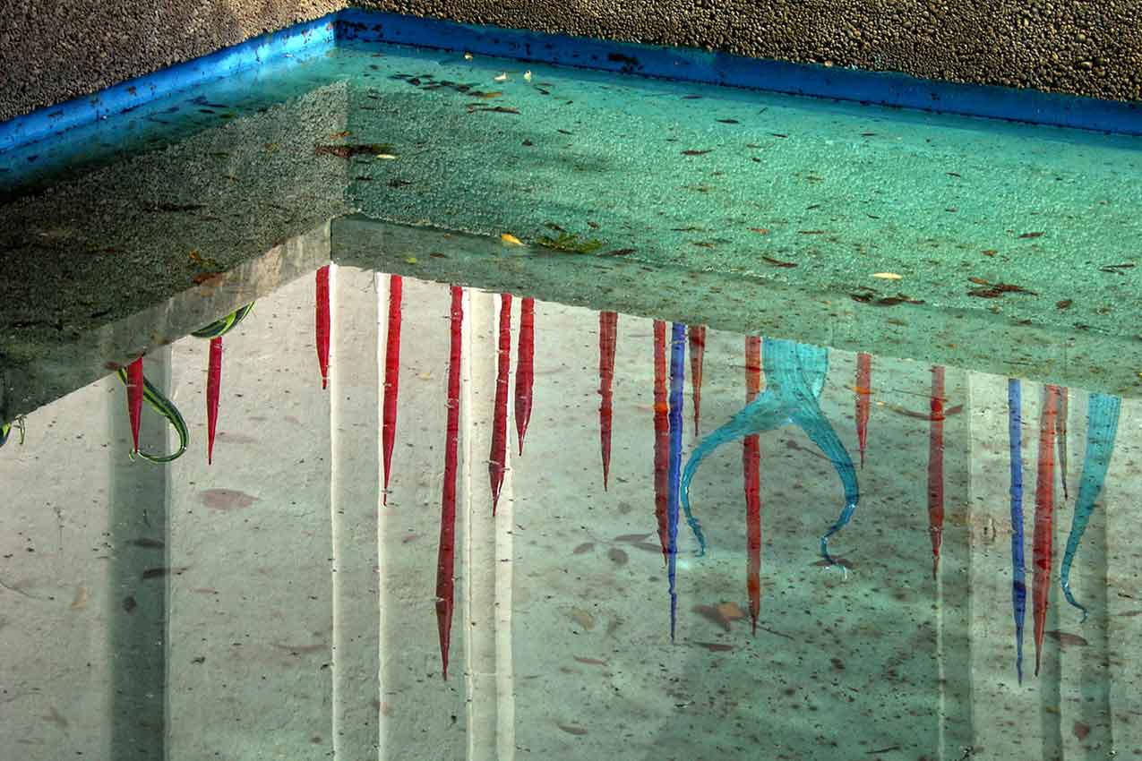 Integralna stvarnost, kakvu smo do sada doživljavali, poremećena je medijima. Oni svijet žele učiniti razgovjetnom slikom, svijetom savršene izvjesnosti. Odrediti što je što u njemu. Tri dimenzije u kojima smo navikli prepoznavati okruženje, na fotografiji Slađana Dragojevića, dovedene su na upit. Iako kadar dvodimenzionalno prikazuje realni, trodimenzionalan motiv, elementi izazivaju nedoumicu. Medij je krivac koji ukida prostorno-vremensku realnost događaja, proizvodeći scenu kao samu aktualnost. Prepoznavanje motiva traži znatnu pažnju promatrača. Proporcije motiva možemo tumačiti kao prostrane ili skučene. Bazen ili mali ribnjak, svejedno. Ocjena o gabaritima ostavljena je promatraču. Autor nam ne pruža motiv već njegov odsjaj na površini vode. Ipak, u kadar pripušta i dio relanog čime nas još više zbunjuje. Pozicija autora pa zatim nas, publike, ima na uvid iluziju uokvirenu realnim. Dragojević provocira. Mudri Einstein je odavno zaključio: „Mjere prostora i vremena zavise od kretanja promatrača“. U pokusima sa subatomskih česticama, ustanovljeno je da svijest promatrača utječe na ishod eksperimenta u potpuno identičnim uvjetima. Zaključak je da su misli i osjećaji također dimenzije. One su sastavni dio ljudske svijesti. Detektor laži je jednostavni primjer. Umjetnik nas tjera da aktiviramo dvije dimenzije svijesti: misli i osjećaje. Time propitujemo realnost. „…Ni samo zrcalo ne odražava stvarnost kakva jest, nego je preokreće u svoj negativ…“ Baudrillard