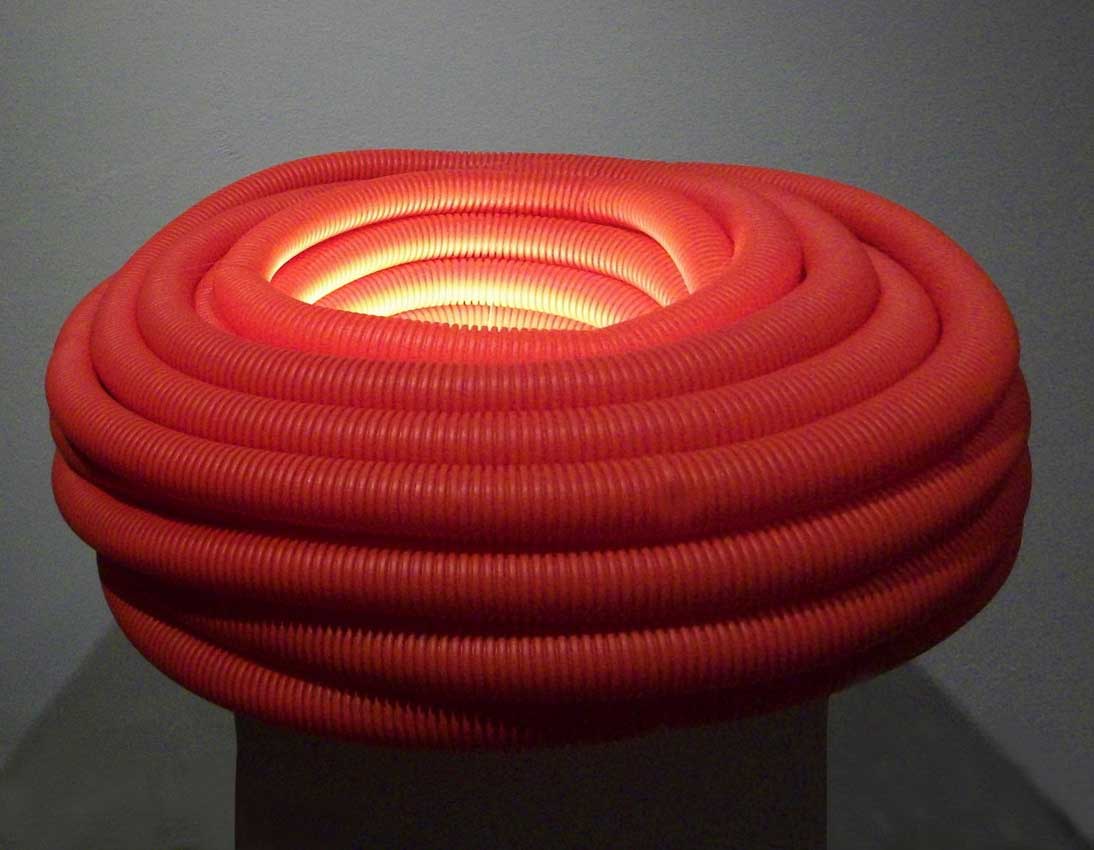 Vulkan energije osobnosti pretapa se u oblikovani artefakt. To postižu rijetki autori. Koristeći prozaične i jeftine materijale koji nisu likovni, Slavica Marin opet nas nagrađuje radom koji izlazi iznad prosjeka oblikovne interpretacije svijeta koji nas okružuje. Ovaj rad možemo doživjeti kao provokativnu konformaciju koja označuje civilizaciju. Plastika, energija (struja), okruženost obavezama, želja za odbacivanjem zadatosti, ideja promjene, pucanje po šavovima, implozija osobnosti, sve su to implikacije koje inicira ovaj rad. Strašenje ljudi smakom Svijeta, božjim prokletstvom, nemirom u smrti, samo su oznake ideje da nas se drži pod kontrolom. Energija osobe koja misli i živi jača je od konvencija. Uvjerili su nas mnogi velikani svijesti. Sustanovnici dimenzije Giodana Bruna, Oscara Wildea, Marsela Prusta i sličnih, bili su prezirani u svoje vrijeme a sada ih citiramo i tiho poštujemo. Što to njima znači? Emocije poput vulkana rađamo mi sami. Mjerni instrumenti ljubavi ne postoje. Dimenzije svijesti, misli i osjećaji ne daju se izmjeriti. Postoje aparati za brojenje novčanica. Zar se i vama ne čini da je civilizacija u nevjerojatnoj zabludi? Kako živjeti kad se broje različiti materijalistički parametri a ne broje se oni emocionalni zbog kojih život smatramo važnom situacijom?