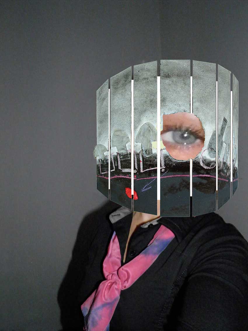 Atraktivan rad na temu ovog projekta podastire Andrea Knežević. Ona se odlučuje poigrati s promatračem. Nudi mu autoportret, dramatično stiliziran i sveden na raster okomitih linija. Tamne okomice u ritmu s prazninama traže od promatrača da ujedini ideju slike. Osim tehnološko – vizualne igre, motiv, dojam ozbiljnosti lica koje nas promatra odašilje znakovitu poruku. Čini se da je autorica željela reći kako je svijet zapravo iluzija i kako kad povećamo stvari dobijemo raspršenu površinu koju pogledom moramo prikupiti u motiv. Najprije se trudimo vidjeti a tek onda doživjeti ovaj rad. To je navika koju njeguje zapadna, naša civilizacija. Mi nećemo zatvoriti oči i pokušati osjetiti vibracije, energiju, neke senzibilne poruke ovog rada. Najprije želimo ugledati. Tek poslije, možda, poneka osoba poželi doživjeti objekt koji je pred njom. Zablude civilizacije o izdvojenosti unutar dimenzija ipak se tope uvođenjem spoznaja, potvrđenih znanstvenim filozofsko – fizikalnim dostignućima, o prožetosti svih stvari u univerzumu i njegovoj stalnoj mijeni. Alter postmodernizam preoblikuje svijet prema ideji autora koji se ne boji eksperimentirati. Materijal, sredstva, motivi prepušteni su na volju idejnom tvorcu koji više nije Bog već je jedno od nas. Relativizacija okoline postaje svakodnevni način percepcije. Bog izvan nas je time nestao. Uz obrazovanje i spoznaju o stalnom tijeku i mijeni svega oko nas i u nama samima prestajemo biti podložni uobičajenim pravilima. Tako smo u isto vrijeme sanjači, buntovnici i kreatori. Autorica, oslanjajući se na eksperimentalnu tehnologiju destruira i rekonstruira povezanost materijalnog i nematerijalnog, oblika i iluzije oblika.