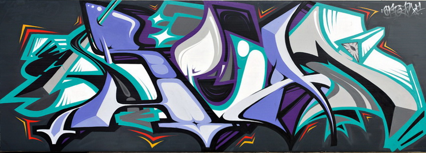 Još jedan Jamesdinov rad slikarski je realiziran a sadržajno citira zvukove kojima smo se budili tijekom trajanja Likovne kolonije. To su grubi zvukovi alata i rada sa metalom i drvom. Ovdje umjetnik koketira sa grafitom, uličnim slikarstvo, uličnim napisima. Ovime čini poveznicu među učesnicima kolonije jer je među njima bilo dvoje fanatičnih uličnih slikara ili grafitera. Dok je The Kraljica Vila mudro, sa većinom sudionika uspjela uspostaviti kontakt bez obzira na izražen njen animozitet prema drugim vrstama vizualnih umjetnosti, Sandin Međedović to nije uspio prebroditi pa smo ga viđali uglavnom u vrijeme zajedničkih obroka. Sandin, pomalo izdvojeno, djelomično i zbog plinova i mirisa svog tehnološkog medija – spreja, ostvaruje rad. Njegov rad grandioznih je dimenzija a očituje znalački pristup oblikovanju grafita. On se igra slovima, napisom, porukom. U rezultatu rad djeluje kao moguća geometrijska apstrakcije i odaje dekorativni prizvuk. Autor kratko i nevoljko obrazlaže ideju ali uz komentar da mi, „normalni“ umjetnici to ne razumijemo. To mu nije dobar stav jer, i kirurg, koliko da mu je posao specifičan nađe riječi da običnim ljudima pojasni što zapravo radi i kako teče proces operacije. Iako zaista smatramo grafite i grafitere, kao kreativce, manjkalo nam je više komunikacije s njime.