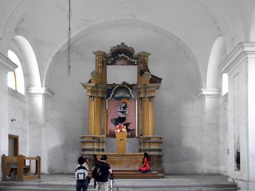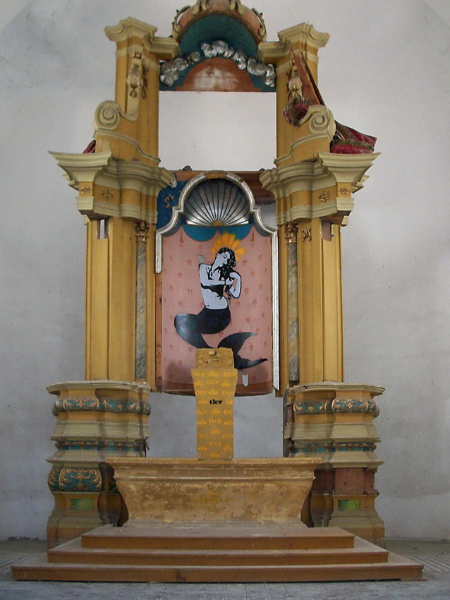 Nadalje, TKV u likovnom smislu maksimalno koristi datosti koje nalazi u napuštenom hramu pa joj se njena sirena besprijekorno uklapa u postojeće ostatke mizanscene – školjka koja nadsvođuje središnji oltarni dio. I to još nije sve, ona hrabro dorađuje elemente koji se ne mogu maknuti iz scene pa se cijela trodimenzionalna kompozicija oltara sa slikom doima nevjerojatno uvjerljivo. Ova svojevrsna diverzija poklapa se sa njenom osobnom idejom uličnog slikarstva: pojaviti se negdje i nekome iskazati (moguću) slikovnu poruku.